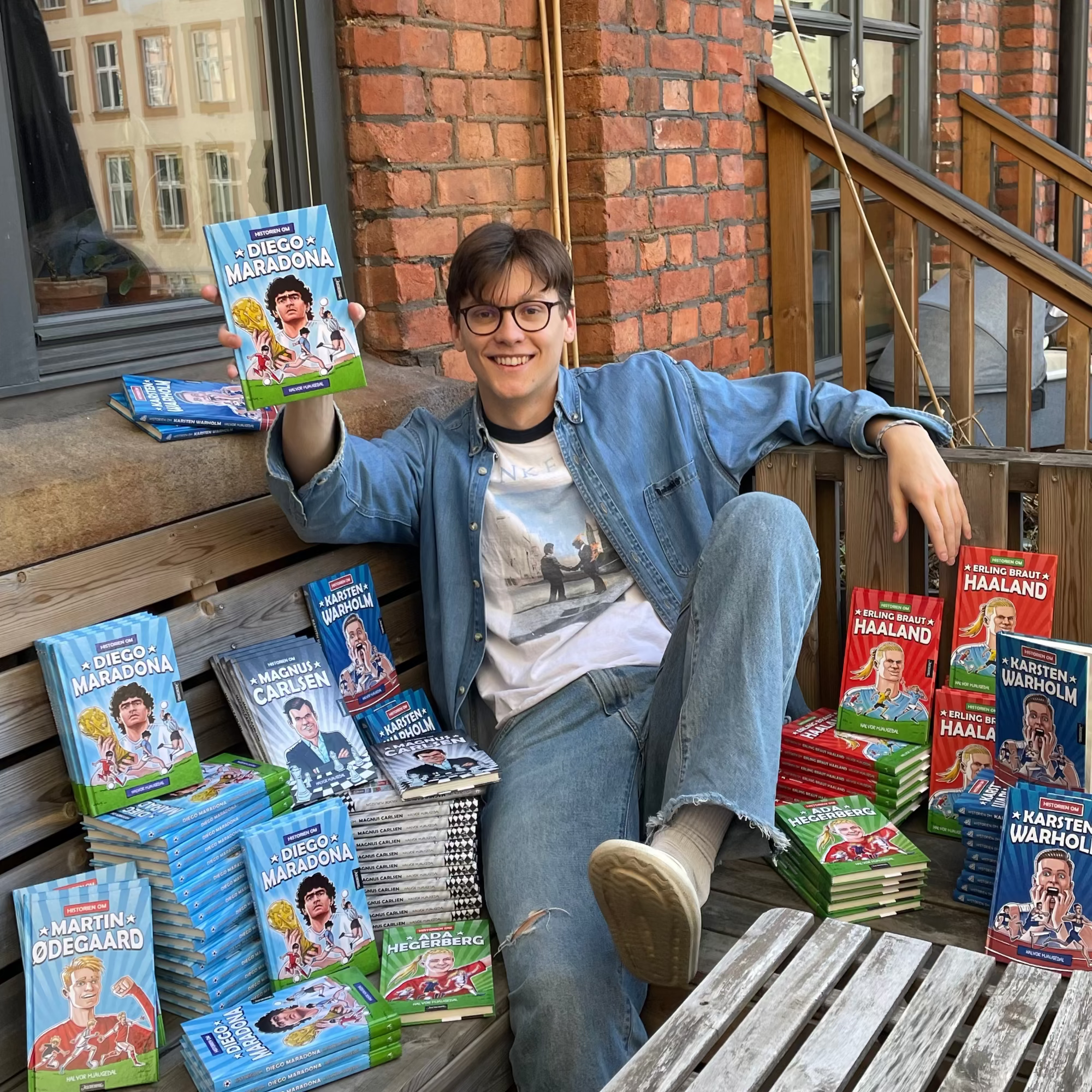 Mjaugedal has written and illustrated six children’s books, including biographies of Diego Maradona, Erling Braut Haaland, and Martin Ødegaard.